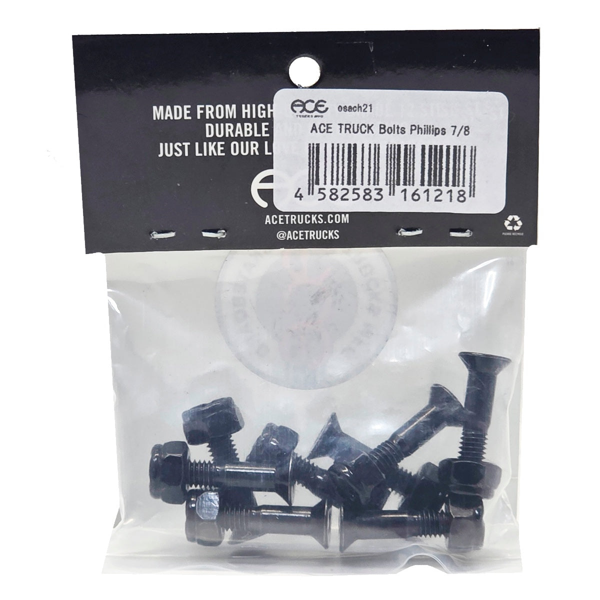 デッキとトラックを固定するためのボルト、ナットのセットです。長さは7/8インチ。一般的な厚みのデッキとトラックを固定するのに適したサイズです。