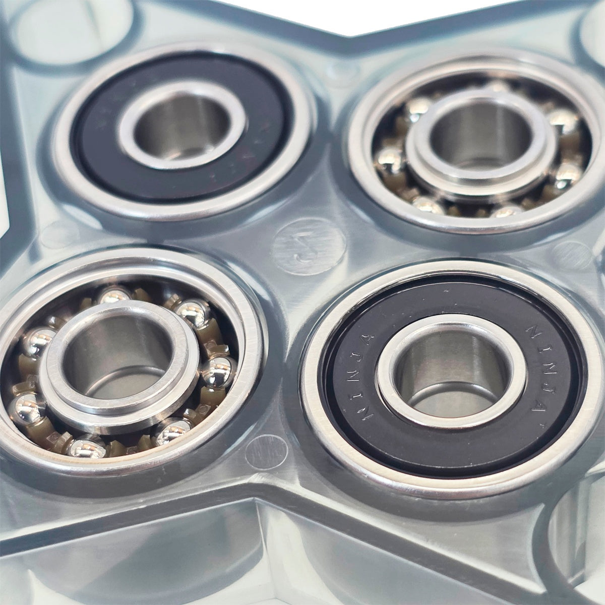 金属シールドのへこみが気になる、というNINJAファンのみなさまの声を形にしました。シールドは樹脂製、BLACKプラカバー。シールドの無い面を表にするとオイルの充填が楽です。楽砂やホコリの侵入を防ぎたい方は、シールド面を表にしてください。