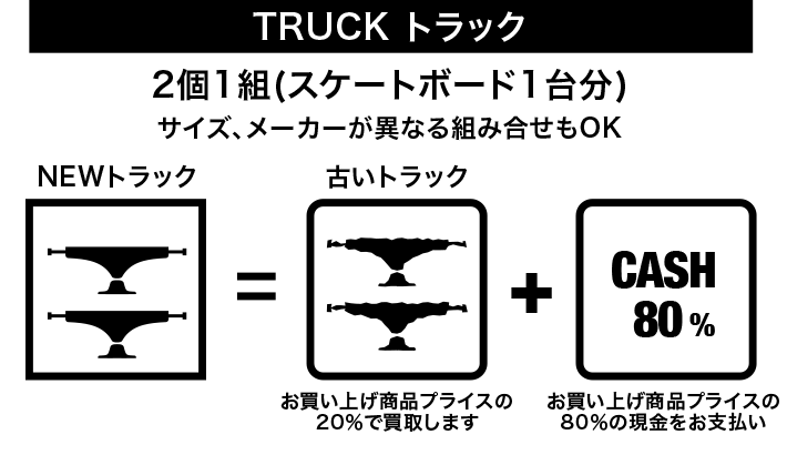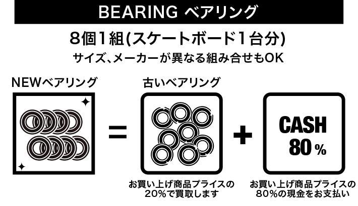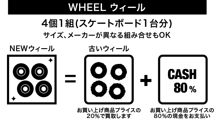 店頭でデッキ、ウィール、トラック、ベアリング、シューズをお買い上げいただく際にお使いいただいたギアを下取りさせていただくプロジェクトです